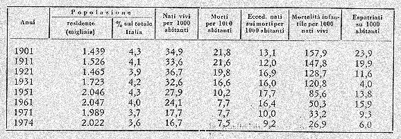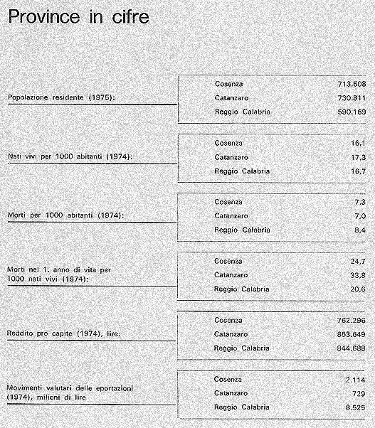 mille abitanti nel 1901 a 7,5 nel 1974. Per quest'ultimo dato, la Calabria