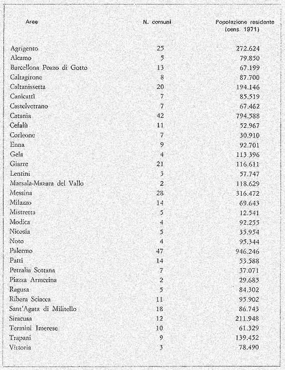 in Sicilia (Unione Italiana delle Camere di Commercio) 32 aree socio-economiche,