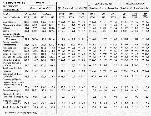 al biennio 1977-1978 indicano, per la produzione nei diversi settori