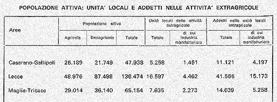 la popolazione attiva, si hanno i seguenti dati: nei comuni dell'area