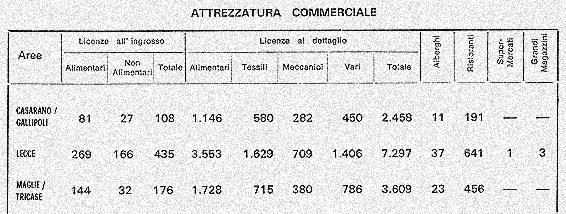 nelle tre aree salentine sfiorano le 720, mentre quelle al dettaglio