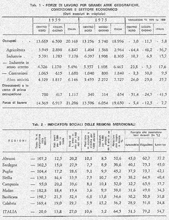 L'arca meridionale assorbe nel 1975 poco più del 30% delle forze