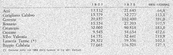 demografica della Calabria nei primi tre quarti di questo secolo.