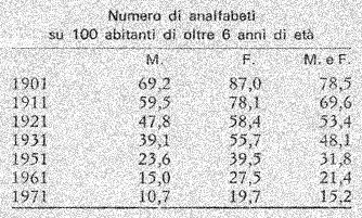 al censimento del 1971 risultavano analfabeti il 10,7 per cento degli