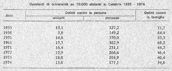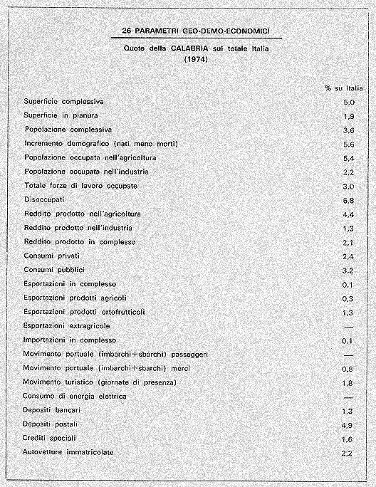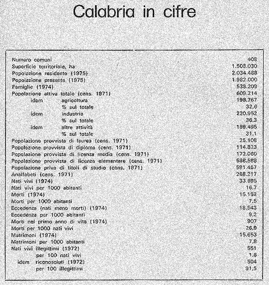 mille abitanti nel 1901 a 7,5 nel 1974. Per quest'ultimo dato, la Calabria