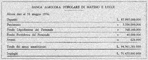 della Banca Agricola Popolare di Matino e Lecce risultano così