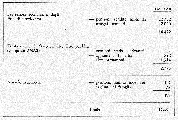 prestazioni previdenziali erogate nel Paese indica per il 1975 che le
