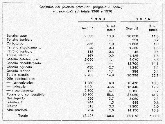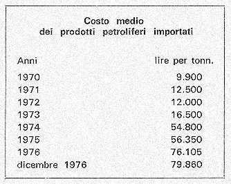 Costi e consumi del petrolio I rifornimenti di petrolio continuano ad essere molto gravi per l'economia italiana, nonostante qualche lieve diminuzione dei consumi ottenuta negli ultimi mesi. I costi cif hanno avuto il seguente andamento: