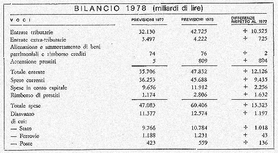 2) Bilancio 1978: entrate 47.832 miliardi; spese 60.406 miliardi. Disavanzo