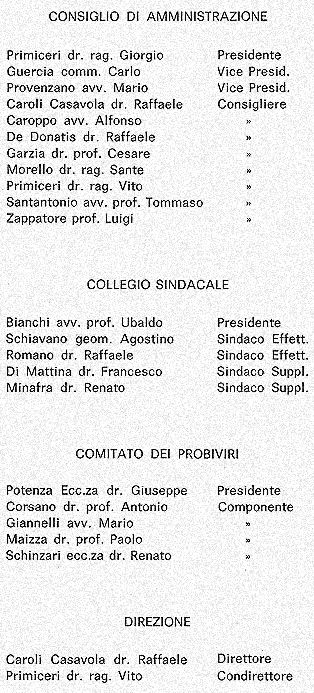 e deliberare comprendeva i seguenti argomenti: 1) relazione del Consiglio di Amministrazione e rapporto del Collegio Sindacale sull'esercizio 1977; 2) presentazione del Bilancio al 31-12-1977; 3) nomina di quattro Consiglieri di Amministrazione in sostituzione dei signori Alfonso Caroppo, Mario Provenzano, Tommaso Santantonio e Luigi Zappatore, scaduti per anzianità, del Collegio Sindacale e del suo Presidente e del Comitato dei Probiviri, per scadenza del mandato; 4) determinazione della retribuzione dei Sindaci; 5) varie ed eventuali. I soci sono convenuti numerosi e, come sempre, hanno, costituito un uditorio attento e vivamente partecipe di ogni fase dell'adunanza. Ha assunto la Presidenza dell'Assemblea il dr. Giorgio Primiceri, Presidente del Consiglio d'Amministrazione, che ha chiamato alla carica di Segretario il dr. Raffaele Caroli Casavola, Direttore Generale della Banca. Dopo gli accertamenti di rito, il Presidente ha dichiarato aperti i lavori e ha trattato concisamente alcuni argomenti di scottante attualità: primo fra tutti il sequestro dell'on. Aldo Moro e il massacro della sua scorta. Tutta l'Assemblea, unanime, si è associata, con grande spontaneità sia alla fermissima condanna dell'orribile crimine, sia alle espressioni di viva speranza nella sollecita liberazione dell'on. Moro, sia alle attestazioni di fiducia rivolte alle Forze dell'Ordine. Esaurito il breve preambolo, il Presidente ha invitato il dr. Caroli Casavola a dar lettura della Relazione del Consiglio di Amministrazione sull'esercizio 1977. La parte introduttiva della Relazione, dedicata ad un'analisi attenta dei tanti malanni di varia natura che continuano ad affliggere il Paese con incisività crescente, si è chiusa con un pressante invito alla buona volontà rivolto a tutti: cittadini, partiti, enti, associazioni. Buona volontà attiva, intesa non soltanto come fondamento di ogni azione, ma anche come ingrediente indispensabile in ogni circostanza, se vorremo allontanare dal nostro futuro vicino condizioni che potrebbero essere così catastrofiche da risultare essenziali per tutti. Delineate rapidamente le caratteristiche della situazione su scala nazionale, la Relazione ha analizzato dettagliatamente i risultati dell'annata nella zona di lavoro dell'Azienda. L'agricoltura ha ottenuto basse rese produttive unitarie e prezzi di mercato scarsamente remunerativi. Nei particolari: buoni risultati dell'olivicoltura; crisi della tabacchicoltura, sia per lo sfavorevole andamento climatico sia per le condizioni di grave ristagno del mercato; insoddisfacente la produzione ortofrutticola, ancorché di ottima qualità, e poco remunerativi i prezzi spuntati; altrettanto insoddisfacente l'andamento della viticoltura. Su quasi tutte le colture hanno influito in modo determinante le terribili brinate primaverili, apportatrici di danni gravissimi agli agricoltori, ai quali la Banca non ha fatto mancare un pronto e concreto sostegno. Il settore secondario ha risentito macroscopicamente situazione della crisi generale del Paese. L'aumento dei costi di produzione, la pesantezza della situazione finanziaria, la contrazione delle vendite in relazione alla crisi dei mercati hanno fatto registrare un aggravamento nell'intero settore industriale della Provincia. Rilevanti cedenze di mercato hanno colpito alcuni settori, quali il mobilio, l'arredamento e l'abbigliamento. L'edilizia, sia pubblica che privata, ha continuato a soffrire di una crisi acuta; l'artigianato invece ha goduto di un andamento economico molto migliore, grazie al regime di favore di cui attualmente gode. Il commercio all'ingrosso ha registrato una flessione complessivamente leggera, poiché le correnti di esportazione non hanno subito rallentamenti; molto marcata invece la flessione riguardante il commercio al dettaglio. Positivo l'andamento in campo turistico. Infine, peggioramento dell'occupazione per effetto della riduzione di posti di lavoro in molte aziende. La Relazione è entrata quindi nel vivo dell'attività della Banca dando giusto e doveroso risalto al considerevole lavoro, compiuto, con coraggio e accortezza, in condizioni assai difficili. In sintesi, si sono registrati i seguenti incrementi: massa fiduciaria, 26,4%; impieghi, 20,1%; patrimonio sociale, 45%; utile di esercizio, 25%. La Relazione del Consiglio di Amministrazione si è chiusa con espressioni di apprezzamento e ringraziamento rivolte alla Direzione Generale, al Collegio Sindacale, a tutto il Personale, alle Autorità, Enti ed Associazioni che hanno collaborato con la Banca e ne hanno seguito e sostenuto l'azione, e infine ai Soci e alla Clientela. Vivi consensi dell'Assemblea hanno ripetutamente interrotto l'esposizione del dr. Caroli Casavola e ne hanno sottolineato la conclusione. Consensi altrettanto vivi ha riscosso l'accurato Rapporto del Collegio Sindacale, letto dal suo Presidente avv. Ubaldo Bianchi. Constatata l'eccellente situazione dell'Azienda, l'avv. Bianchi ha invitato l'Assemblea ad approvare il Bilancio, il relativo Conto Economico e la ripartizione dell'Utile Netto nei modi e nelle misure proposti dal Consiglio di Amministrazione. Chiamata ad esprimersi dal suo Presidente, l'Assemblea ha approvato per acclamazione sia il Bilancio sia il Conto, Economico sia la ripartizione dell'Utile Netto, la quale ha previsto un dividendo di L. 400 per azione. Si è proceduto, poi al rinnovo delle cariche sociali. L'Assemblea ha rieletto per acclamazione i quattro componenti del Consiglio di Amministrazione scaduti per compiuto triennio e, sempre per acclamazione, ha riconfermato il Comitato dei Probiviri e il suo Presidente. Riguardo al Collegio Sindacale l'Assemblea ha confermato nelle loro cariche l'avv. Ubaldo Bianchi e il geom. Agostino Schiavano, eleggendo alla carica di Sindaco effettivo il dr. Raffaele Romano e alla carica di Sindaci supplementi il dr. Francesco Di Mattina e il dr. Renato Minafra. In seguito alle riconferme e alle elezioni di cui sopra, le Cariche Socia