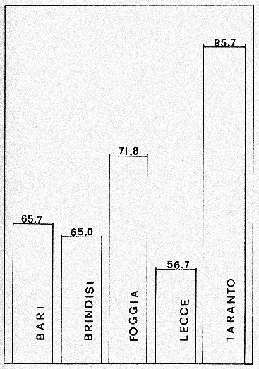 315 e 900 lire per abitante. Fatta uguale a 100 la media italiana, la