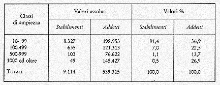 più di 500 addetti erano 220.000 a fine 1980; appare poi dalla