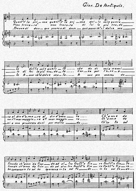 - Una Villanella nella raccolta De Antiquis, 1574 (sue rime in Felis,
